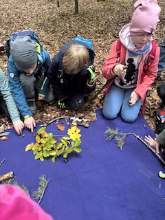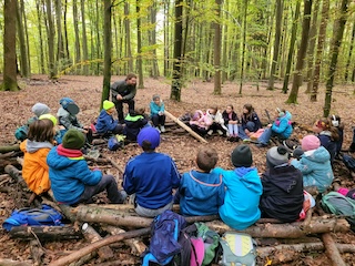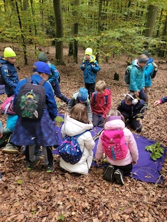 16.10.2025Mitte Oktober verbrachten die vier 3. Klassen einen ganzen Unterrichtsvormittag im Wald. Passend zum aktuellen HSU-Thema erforschten die Schülerinnen und Schüler den Lebensraum Wald mit allen Sinnen. Angeleitet von den Fachkräften des Walderlebniszentrums in Riegling vertieften die Kinder ihr Wissen über die wichtigsten Waldtiere und über Laub- und Nadelbäume, die in unseren Wäldern am häufigsten vorkommen. So wurden zum Beispiel Blätter, Nadeln, Früchte bestimmt, gesucht und gesammelt. Riesigen Spaß machte den Kindern auch das Eichhörnchenspiel. Dabei mussten sie zunächst Kastanien im Wald als Wintervorrat verstecken und dann versuchen, diese wieder zu finden. Das war gar nicht so einfach und den Kindern ging es ähnlich wie den Eichhörnchen, die auch nicht jede Nuss im Winter wiederfinden. Auch das Wer-bin-ich-Spiel zu den Waldtieren fand großen Anklang.