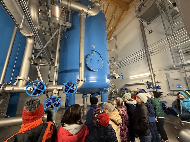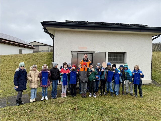 02.03.2026Am 25. und 26. Februar besuchten wir – die 4. Klassen – im Rahmen unserer Unterrichtssequenz zum Thema „Wasser“ den Wasserhochbehälter in Sinzing nahe der Bergstraße. Vor Ort wurden wir freundlich von Herrn Went empfangen, der die Besichtigung für uns leitete und uns mit seinem fachkundigen Wissen den Weg des Wassers erklärte.