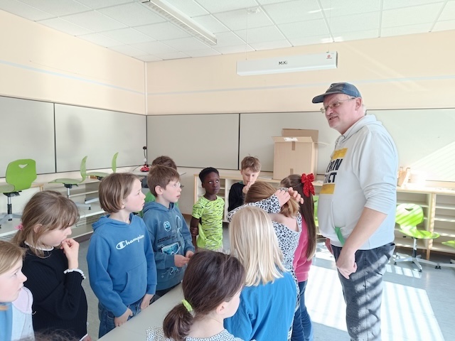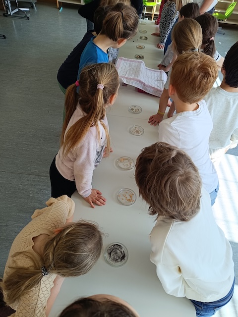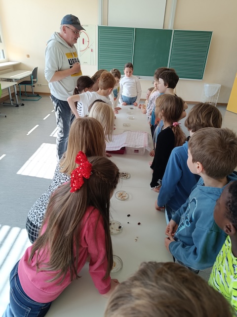 An einem Vormittag im März erklärte er den Kindern alles Wissenswerte zum Thema „Gemüsesamen“ und zeigte den Kindern viele verschiedene Samen. So erfuhren die Kinder zum Beispiel, dass Zwiebeln zwei Jahre brauchen, bis aus den Samen eine große Zwiebel gewachsen ist. Außerdem erzählte Herr Göbel aus seiner Kindheit, in der er einmal blaue Bohnen angebaut hatte, die beim Kochen dunkelgrün geworden sind. Jede Klasse hatte zwei Schalen mit ca. fünf Anzuchtpads mit Samen von Gurken und Paprika versehen. Nun heißt es warten, bis in den Töpfen auf der Fensterbank im Klassenzimmer endlich das erste Grün hervorspitzt. Liebevoll werden die Pflänzlinge nun gegossen und großgezogen. Im Mai werden die Pflanzen ins Gemüsebeet im Schulgarten umgesiedelt. Vielen Dank an Herrn Göbel, dass er sich auch dieses Jahr wieder Zeit genommen hat, um mit uns die Saataktion durchzuführen.
