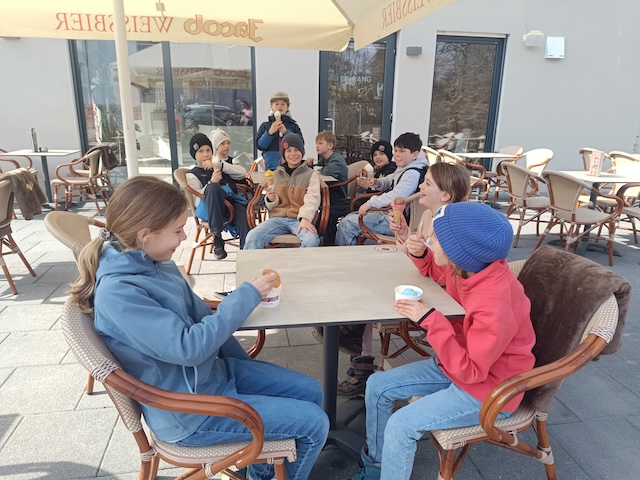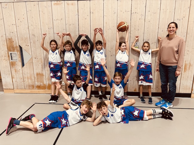 So trainierten zehn SchülerInnen aus den Klassen 3b, 4a, 4b, 4c gemeinsam mit Frau Kating seit Februar sehr fleißig. Dabei wuchsen Alex, Fritz, Anton, Paulina, Klara, Julia, Johann, Jakob, Johannes und Janosch zu einem richtigen Basketball-Team zusammen!